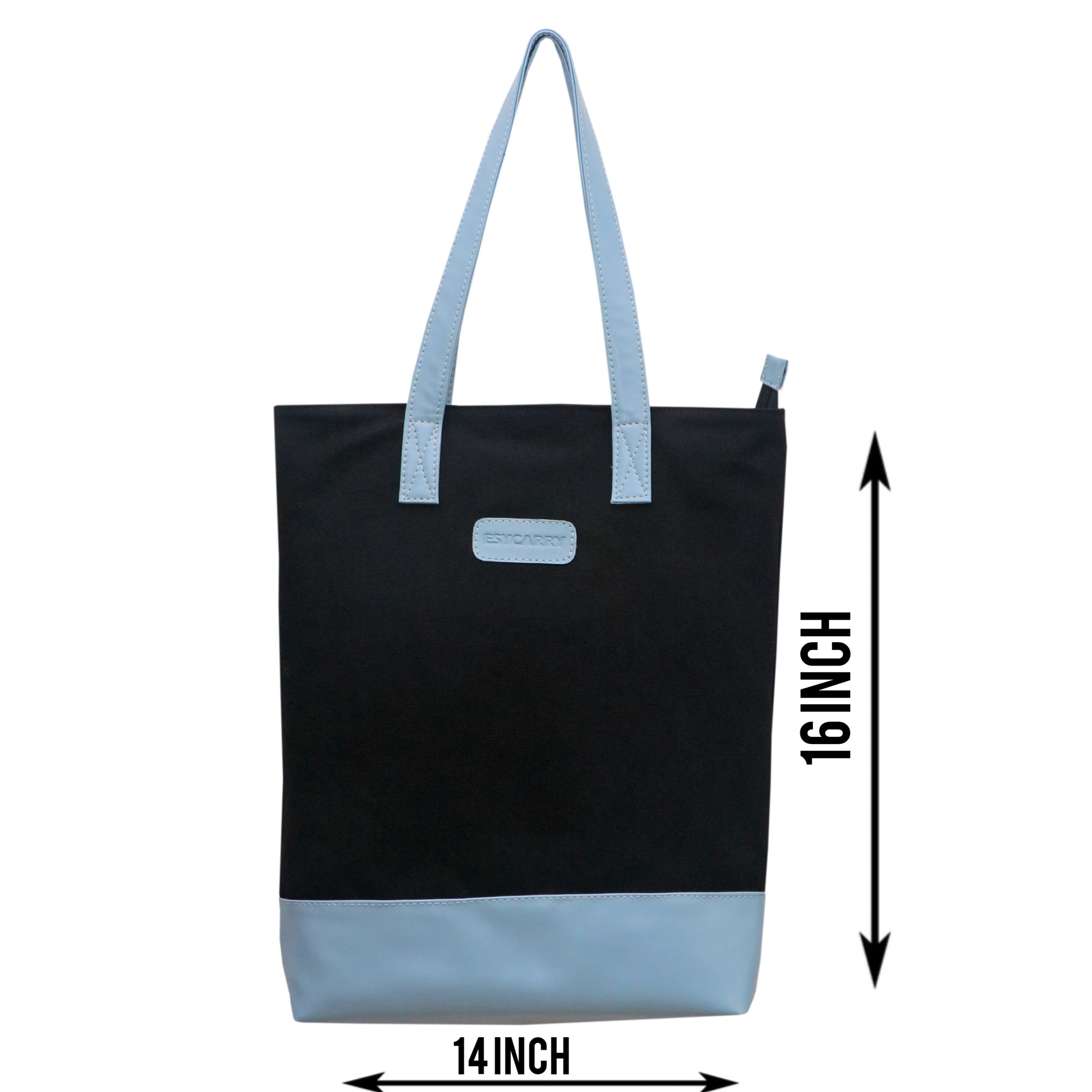Introducing our Vegan Leather & Canvas Blue Tote Bag combines style and sustainability. Crafted from eco-friendly vegan leather and durable canvas, this bag measures 14" x 16" x 3", offering ample space for your essentials. It features a secure zipper closure and an inside zippered pocket for added organization. The vibrant pink color and combination of materials create a chic, modern look that’s perfect for everyday use. Whether you're heading to work or running errands, this tote offers both fashion and functionality.