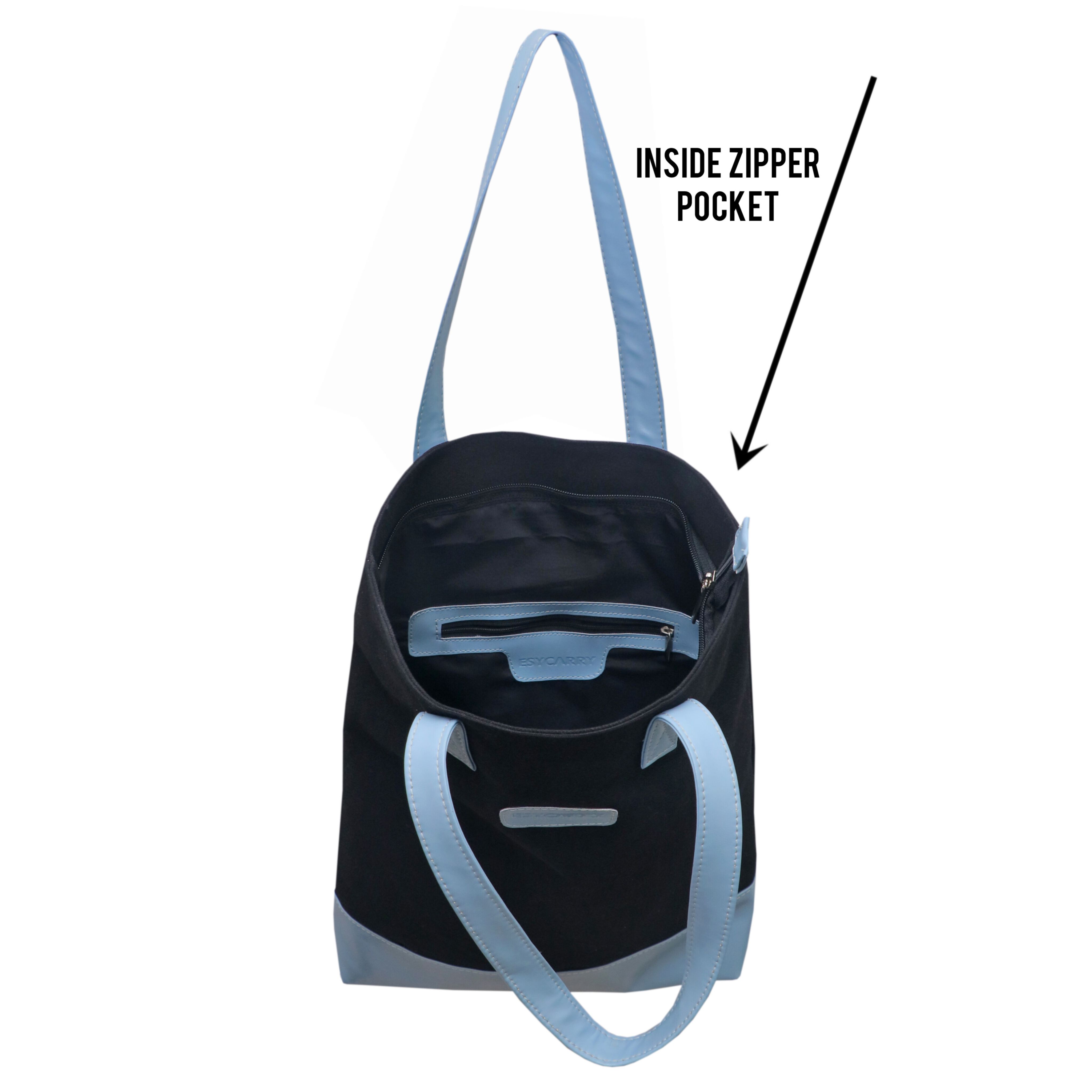 Designed for both style and functionality, this tote features a secure zipper closure to keep your items safe and organized. Inside, you’ll find a zippered pocket, perfect for storing smaller essentials like your phone, keys, or wallet. The mix of vegan leather and canvas gives the bag a unique, textured feel while ensuring it remains lightweight and durable for everyday use.