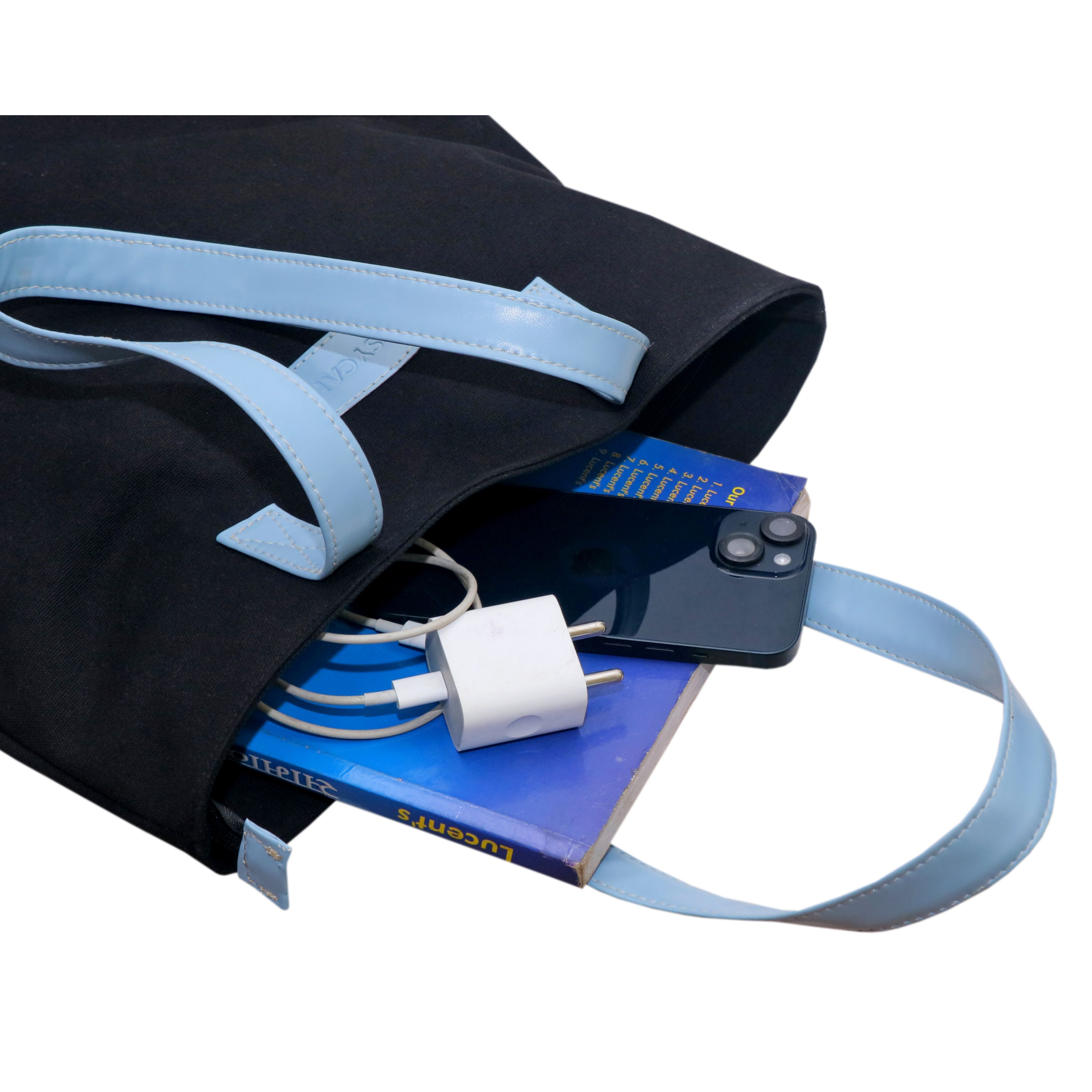 0 Review Of Product Blue Vegan Leather Canvas Tote bag